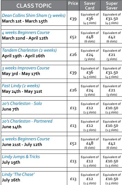 Please email Simone - lindyclub@gmail.com - to book your place on any of the workshops in the list below.